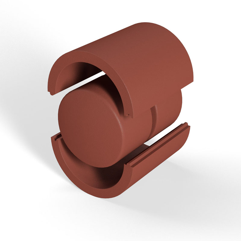 Rohrschale für die Verwendung in leichten Trennwänden bestehend aus 2 Brandschutzrohrhalbschalen und 2x ZZ® 100 Brandschutzstopfen.
